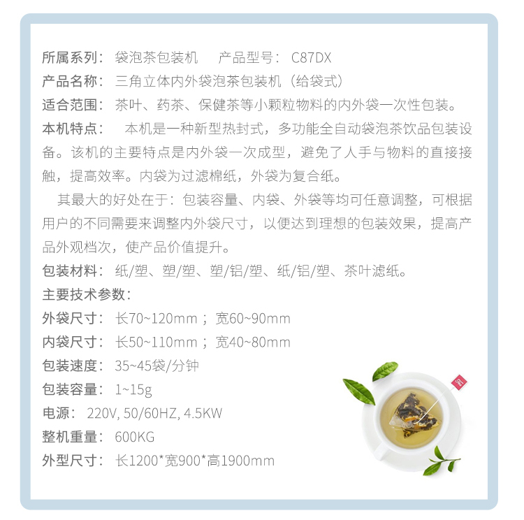 C87DX 三角立體內(nèi)外袋泡茶包裝機(jī)(給袋式)